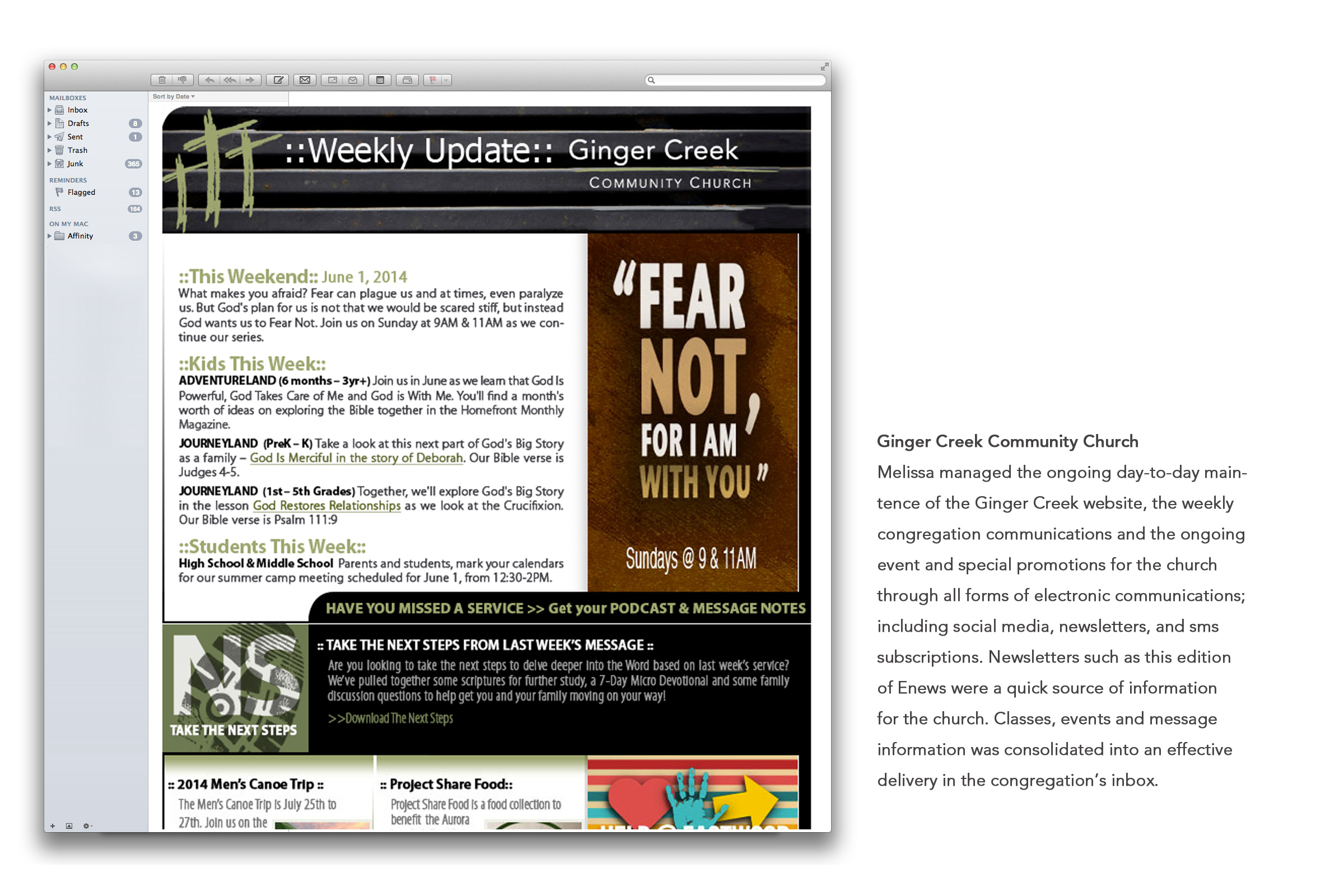 Years of experience have lead Melissa to an understanding of typography, spacial relation, color awareness and visual balance within all elements of print and web design. Designing on message and with purpose is her passion.
