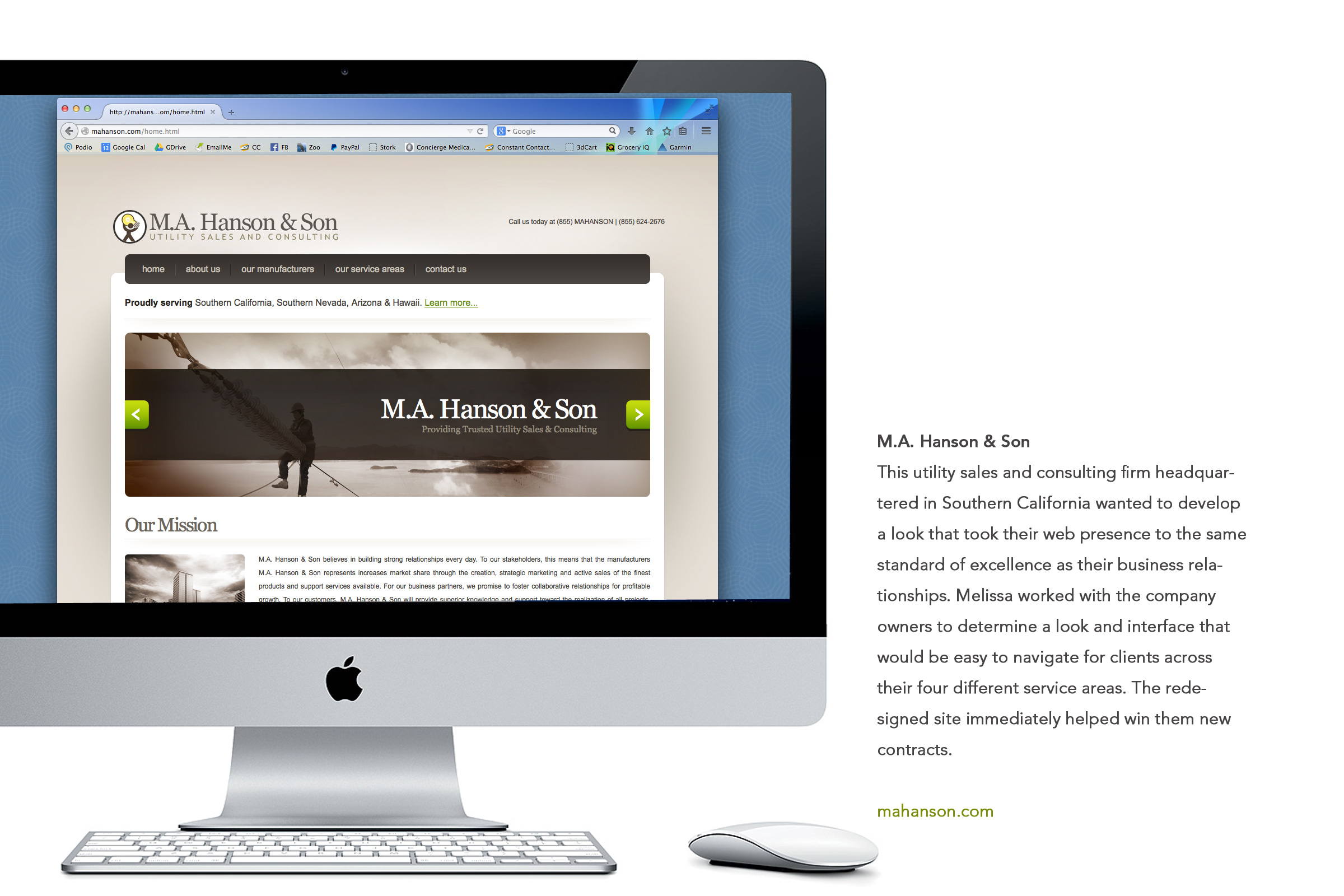 In our ever changing world of technology and design the need to stay current is paramount. Melissa uses online resources such as Lynda Weinman's site as a source of education and self guided learning. Being technically savvy helps Melissa maintain a learning edge.